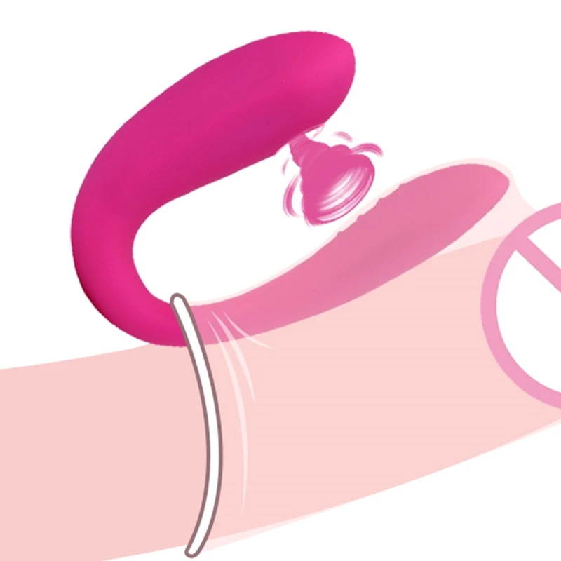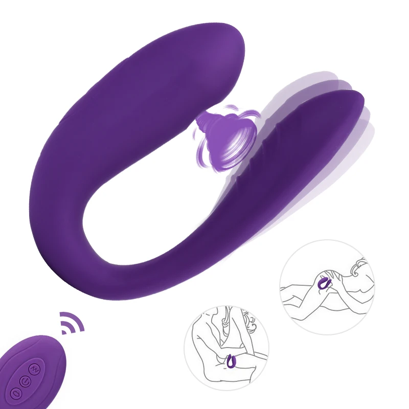 Double Vibrator U shape Sucker Clitoris Stimulator Dildo Vibrator For Women Wireless Remote Control